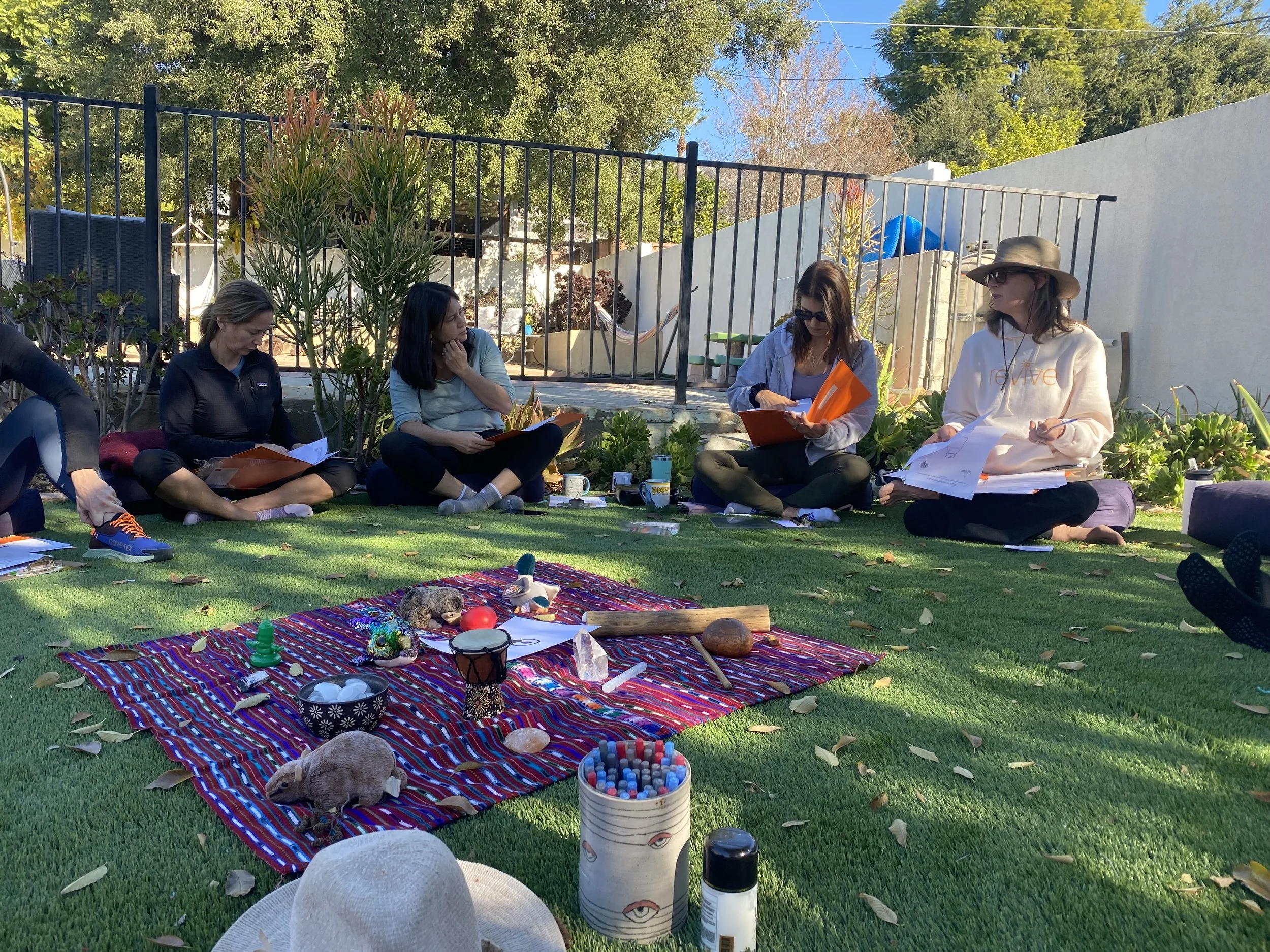 We practice Council, a ritualized sharing circle. We believe that Council is a critical element to every retreat due to its power to foster authentic expression and develop the safe container for the retreat group. Participants speak one at a time, responding to prompts by sharing from their personal experience, while other members of the circle listen from the heart in a loving, non-judgmental way.